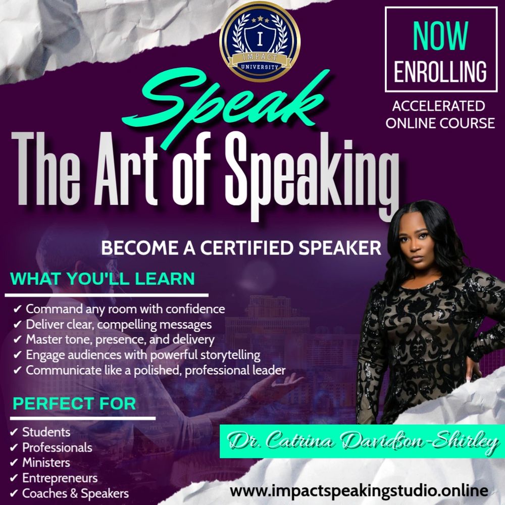 As the Founder and CEO of SPEAK Academy, Dr. Davidson-Shirley remains passionately committed to helping others unlock their fullest potential. Her drive for global impact has propelled her to the next phase of her journey—founding Impact Christian University, an institution designed to inspire, equip, and empower individuals to achieve greatness worldwide.